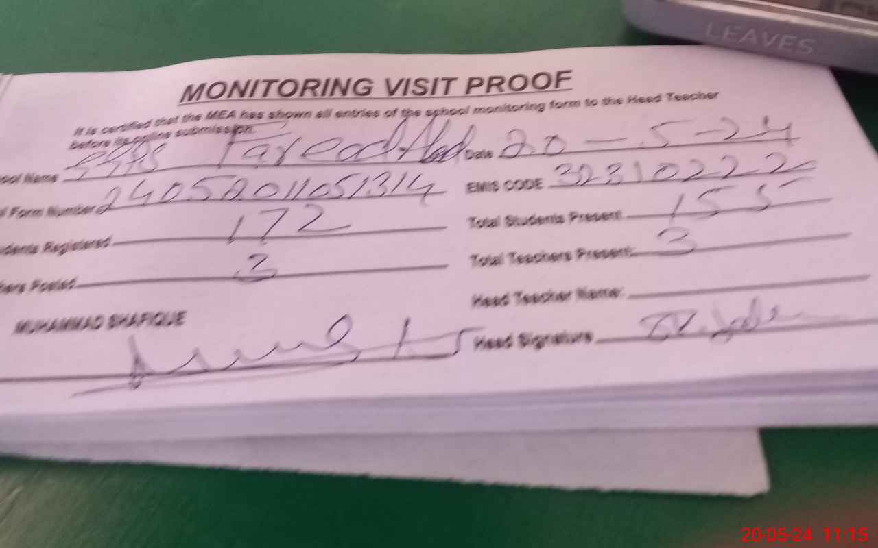 | Attendance Register | Head Teacher | MEA with School | Visit Proof |