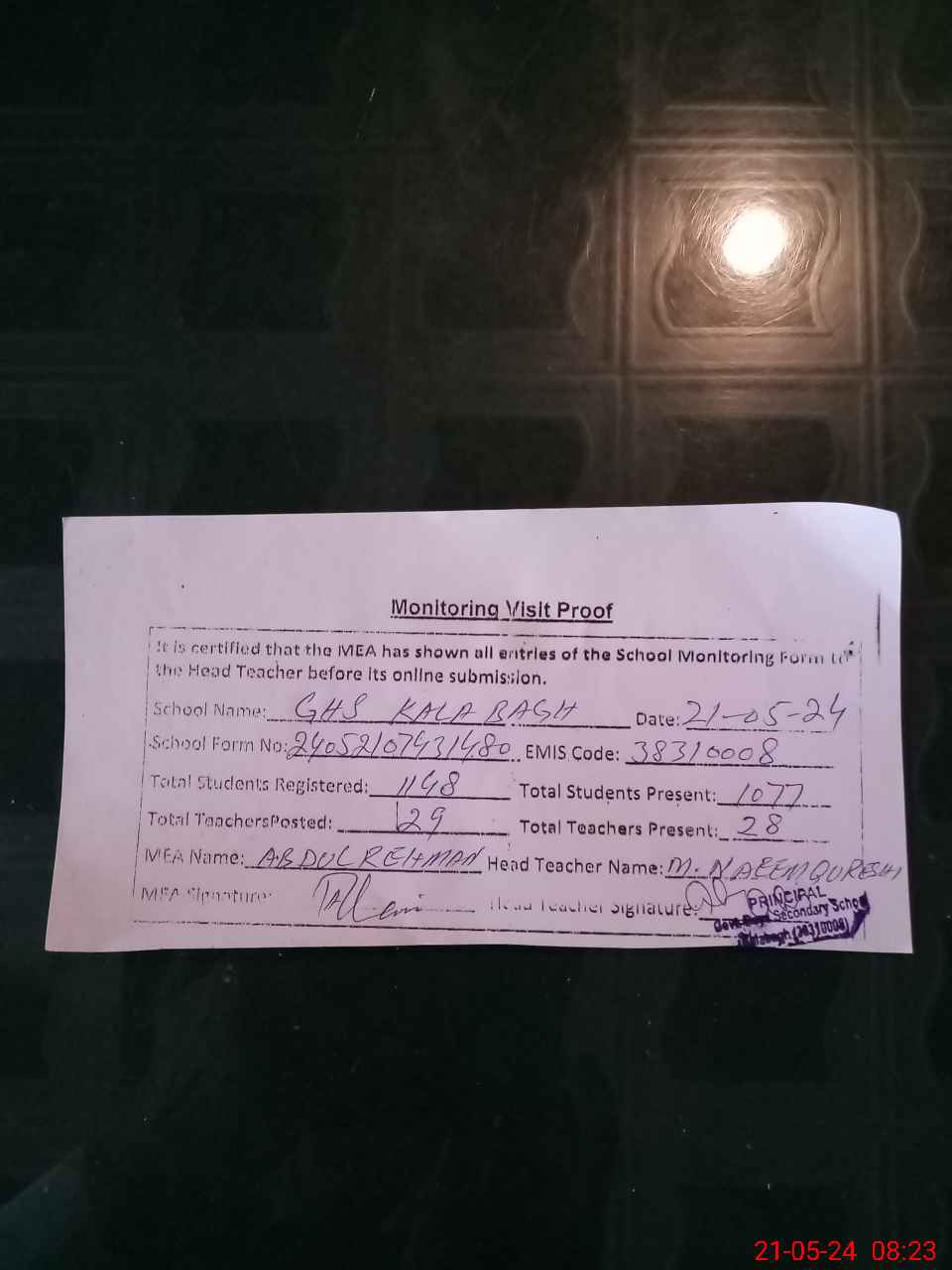 | EMIS Code: 38310008 | Name of School: GHS KALA BAGH | |||