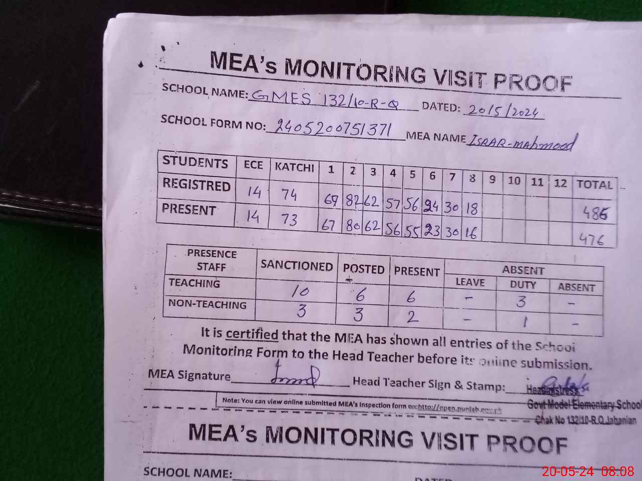 | EMIS Code: 36440485 | Name of School: GMES 132/10-R QADEEM, JAHANIAN | |||