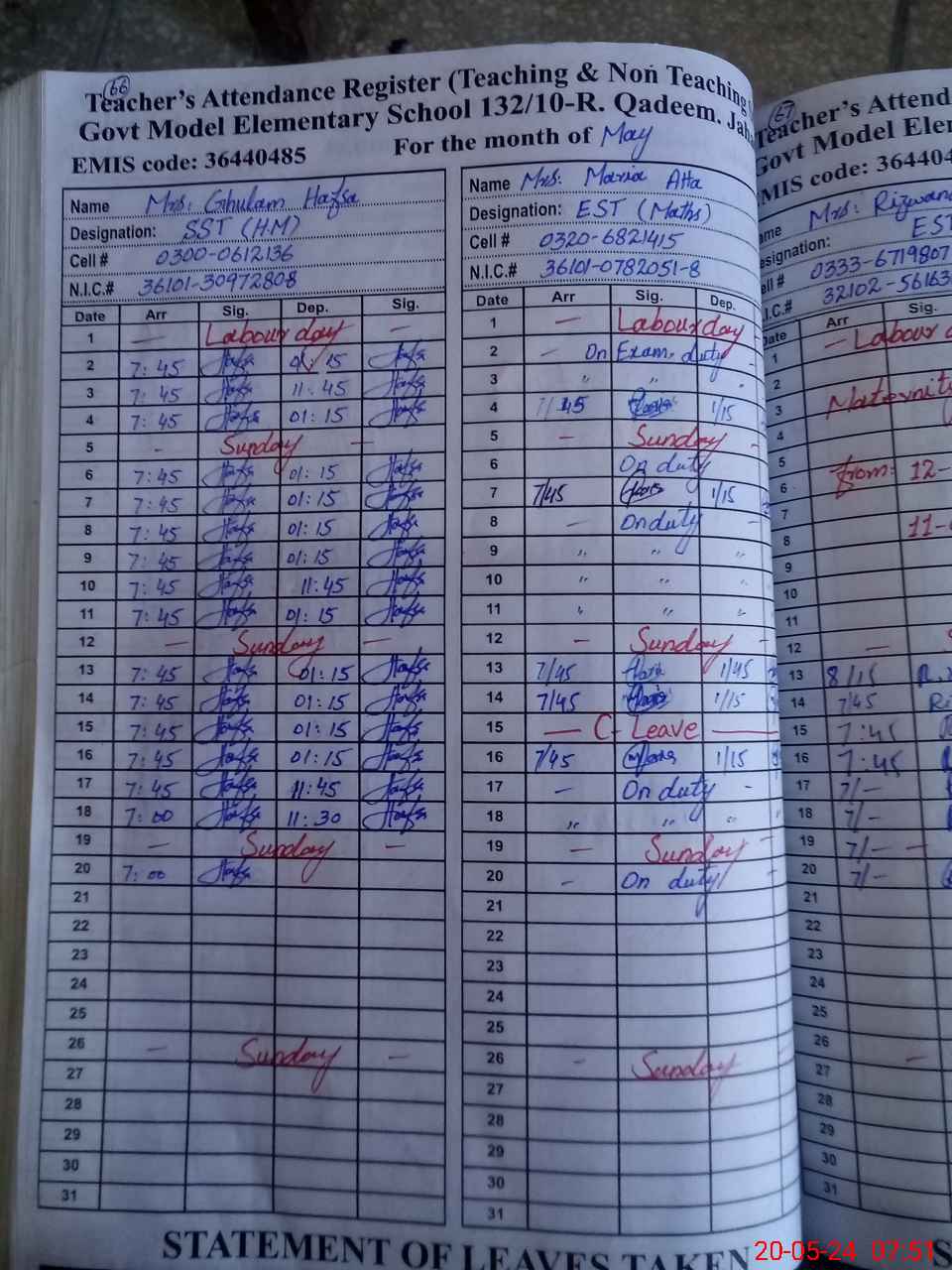 | 36**** | Um**** Gi**** | PST | Regular | 0 | 0 | 0 | 0 | 0 | 0 | 0 | 0 | 0 | Exam Duty |