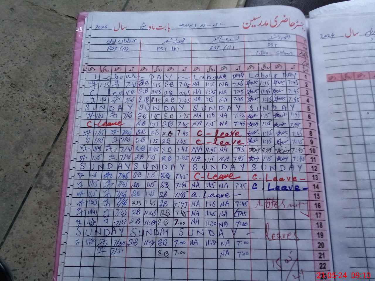 | Leave | Duty | Absent | Maternity | Medical | Ex- Pak |