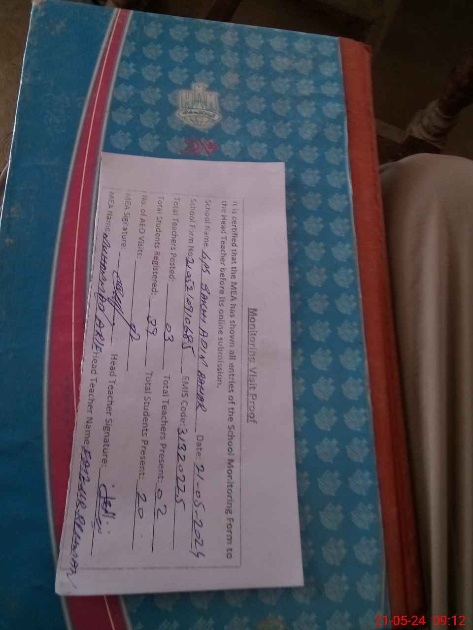 | EMIS Code: 31320225 | Name of School: GPS SAKHI ADAM BAHAR | |||