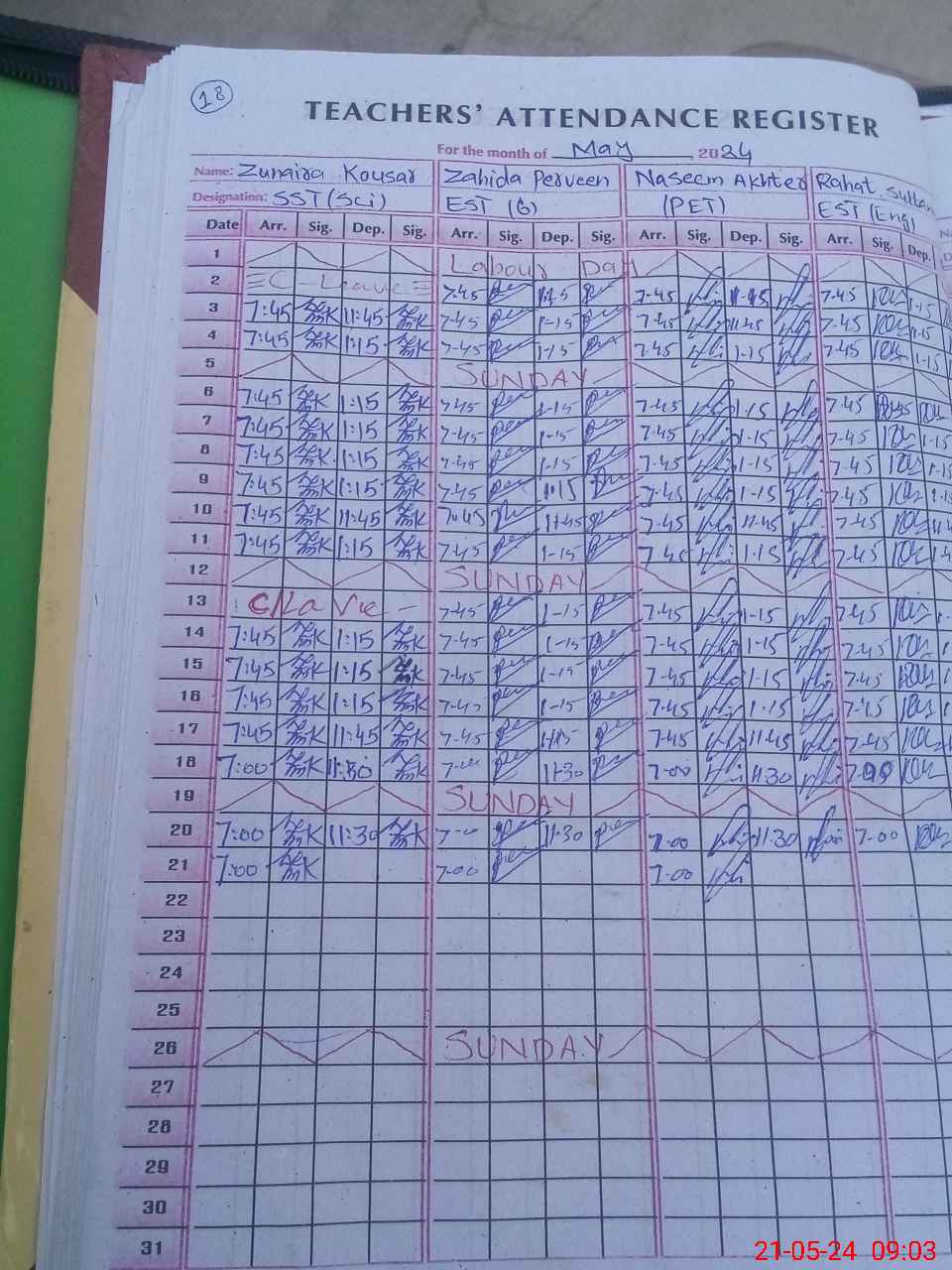 | CNIC | Full Name | Designation | R/C | Absence During Last Calender Month |
