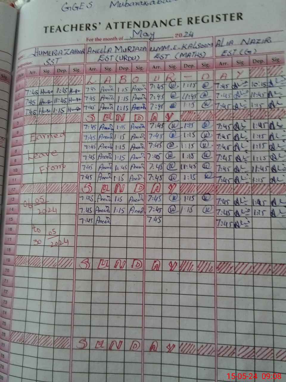| 35**** | Hu**** Za**** | 5 | 1 | 0 | 0 | 0 | 0 | 0 | 0 | 0 | 0 | 0 | Absent (Un-Authorized) |