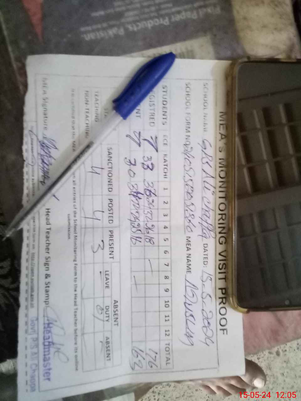 | Attendance Register | Head Teacher | MEA with School | Visit Proof |