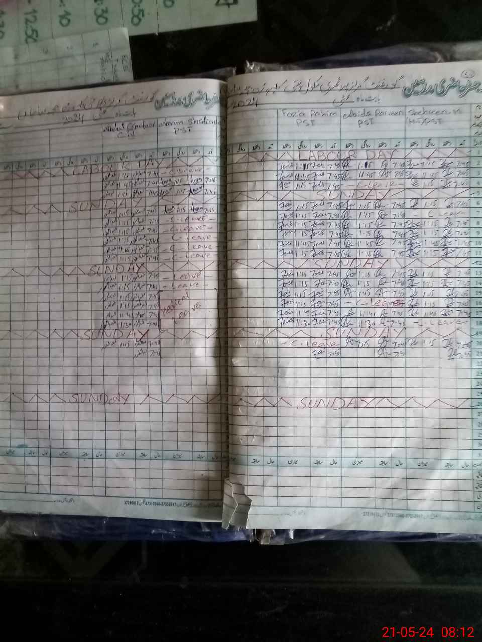 | Leave | Duty | Absent | Maternity | Medical | Ex- Pak |