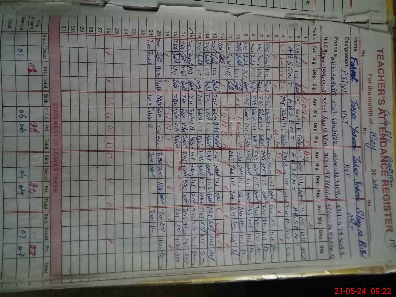 | Name: Ta**** Ya**** Designation: (School Headmaster's/Headmistress's) PST Phone/Cell Number: 03**** |