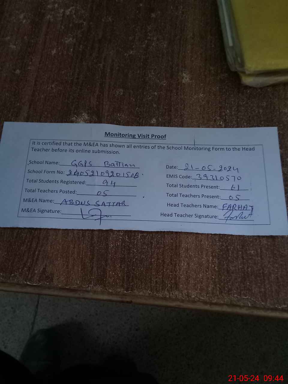 | EMIS Code: 39310570 | Name of School: GGPS BUTTIAN | |||