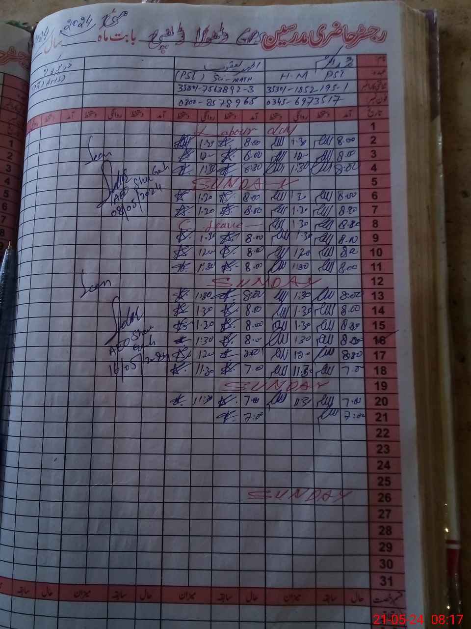 | Name: M.**** Designation: (School Headmaster's/Headmistress's) PST Phone/Cell Number: 03**** |