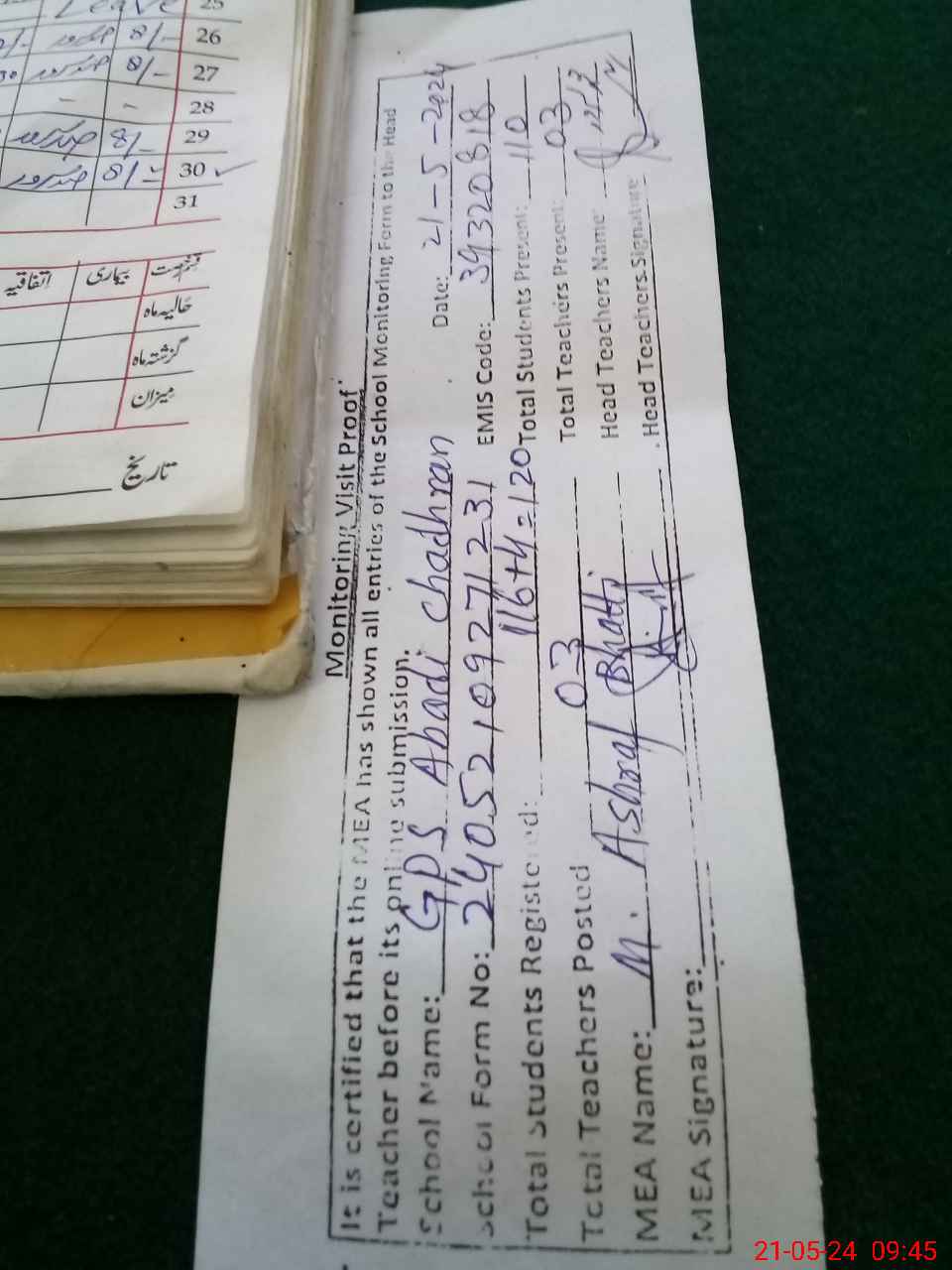 | EMIS Code: 39320818 | Name of School: GPS ABADI CHADHRAN | |||
