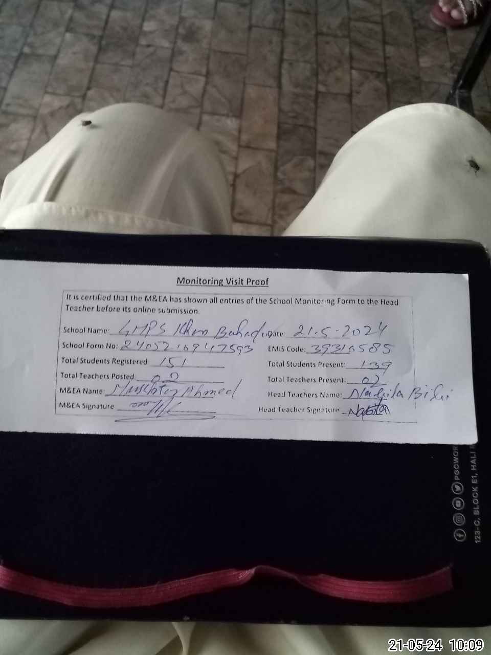 | Name: NA**** BI**** Designation: (School Headmaster's/Headmistress's) PST Phone/Cell Number: 03**** |
