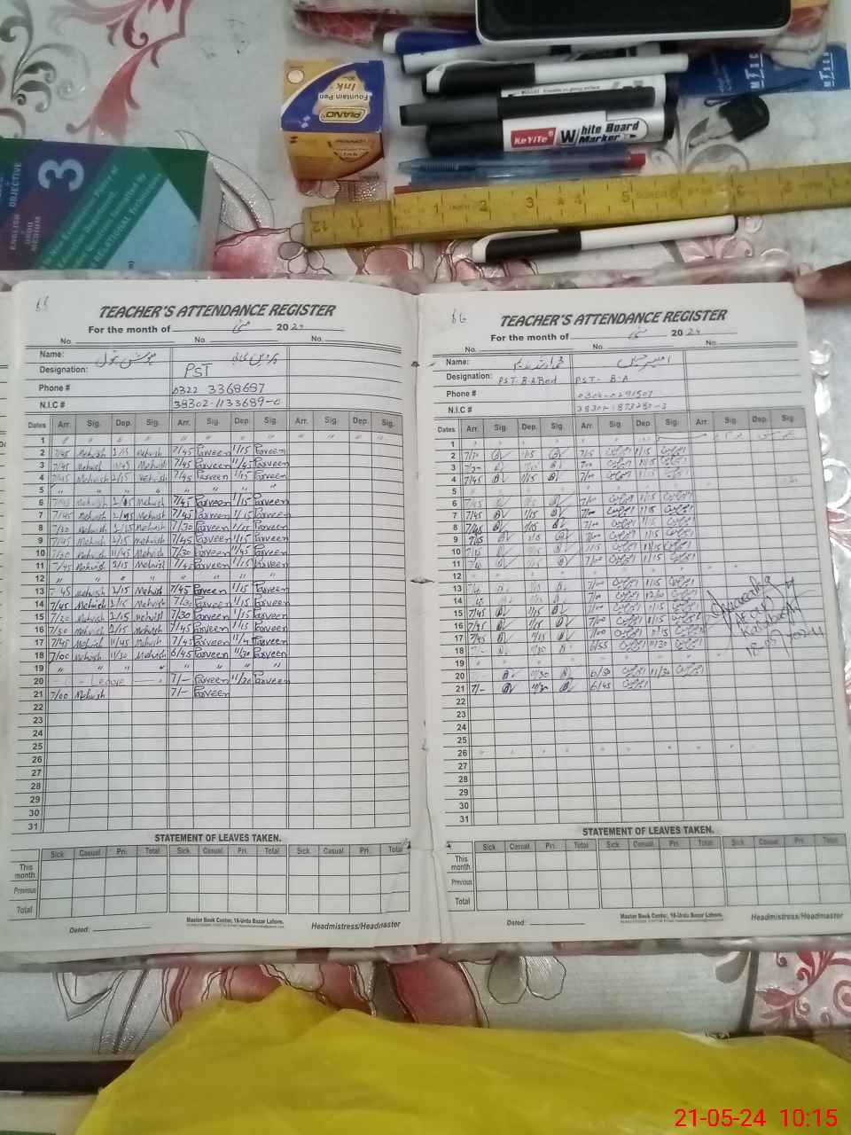 | CNIC | Full Name | Designation | R/C | Absence During Last Calender Month |