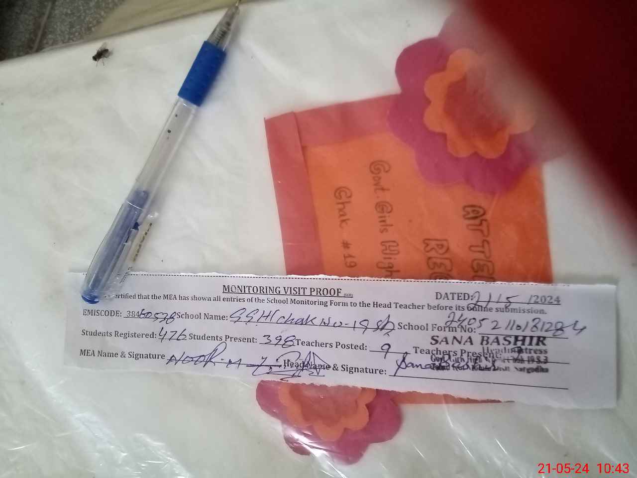 | EMIS Code: 38460538 | Name of School: GGHS CHAK NO.19 SB | |||