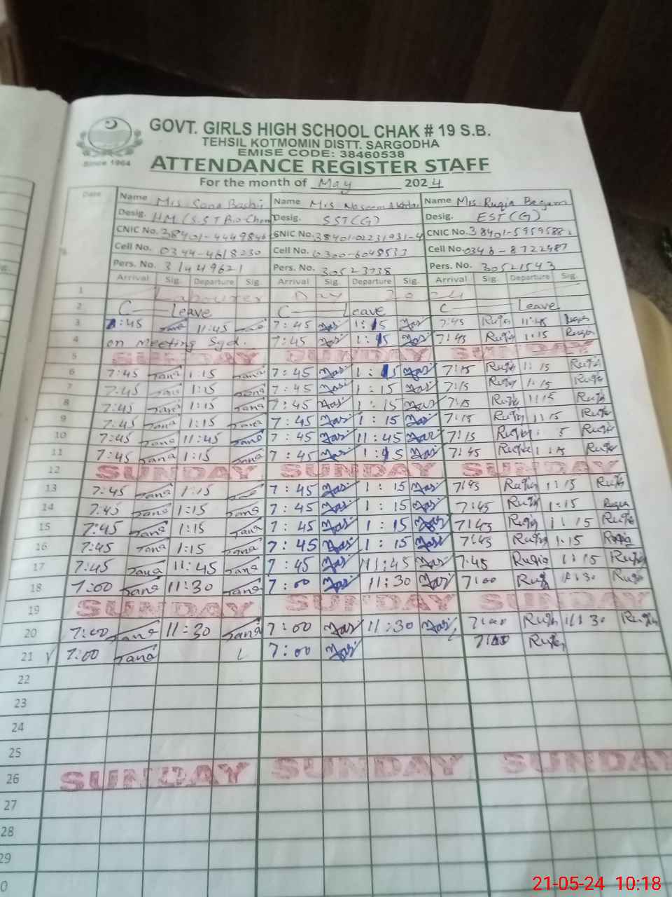 | Name: SA**** BA**** Designation: (School Headmaster's/Headmistress's) SST SCIENCE (HEADMISTRESS) Phone/Cell Number: 03**** |