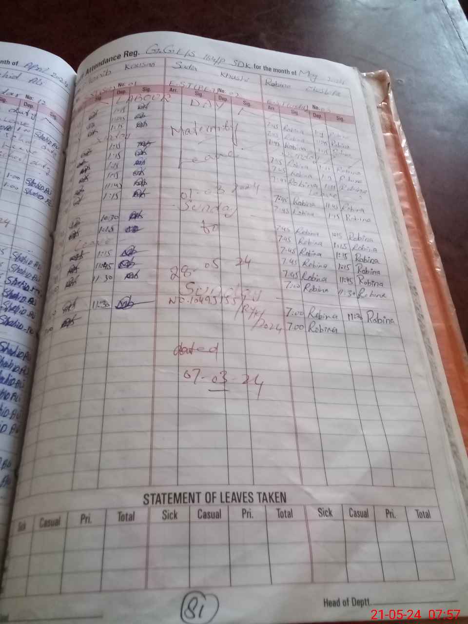 | 31**** | Sa**** Kh**** | Regular | 30 | 0 | 0 | 30 | 0 | 0 | 0 | 0 | 0 | Maternity | |