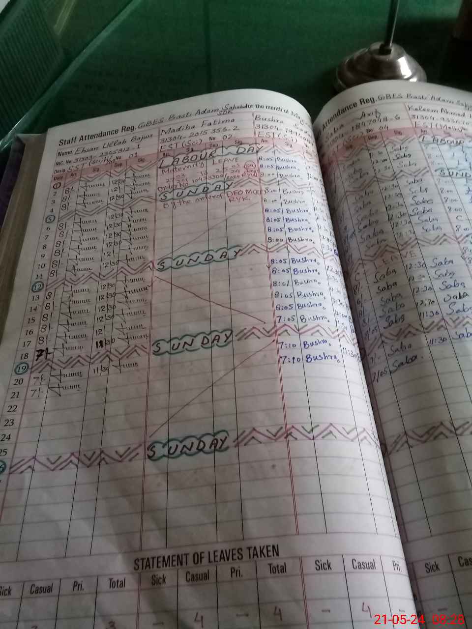 | Leave | Duty | Absent | Maternity | Medical | Ex- Pak |