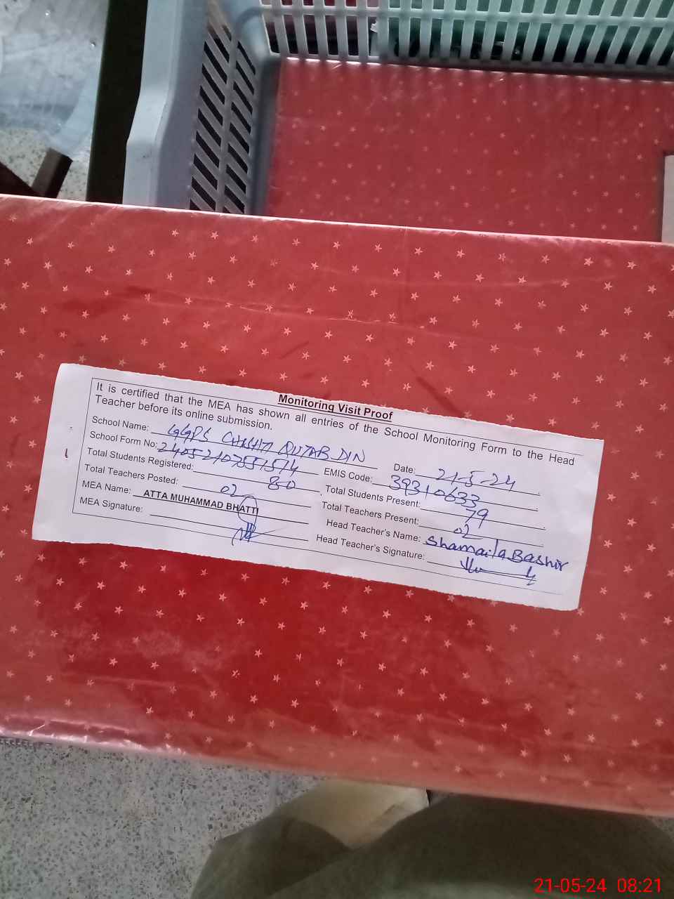 | EMIS Code: 39310633 | Name of School: GGPS CHISHTI QUTAB DIN | |||