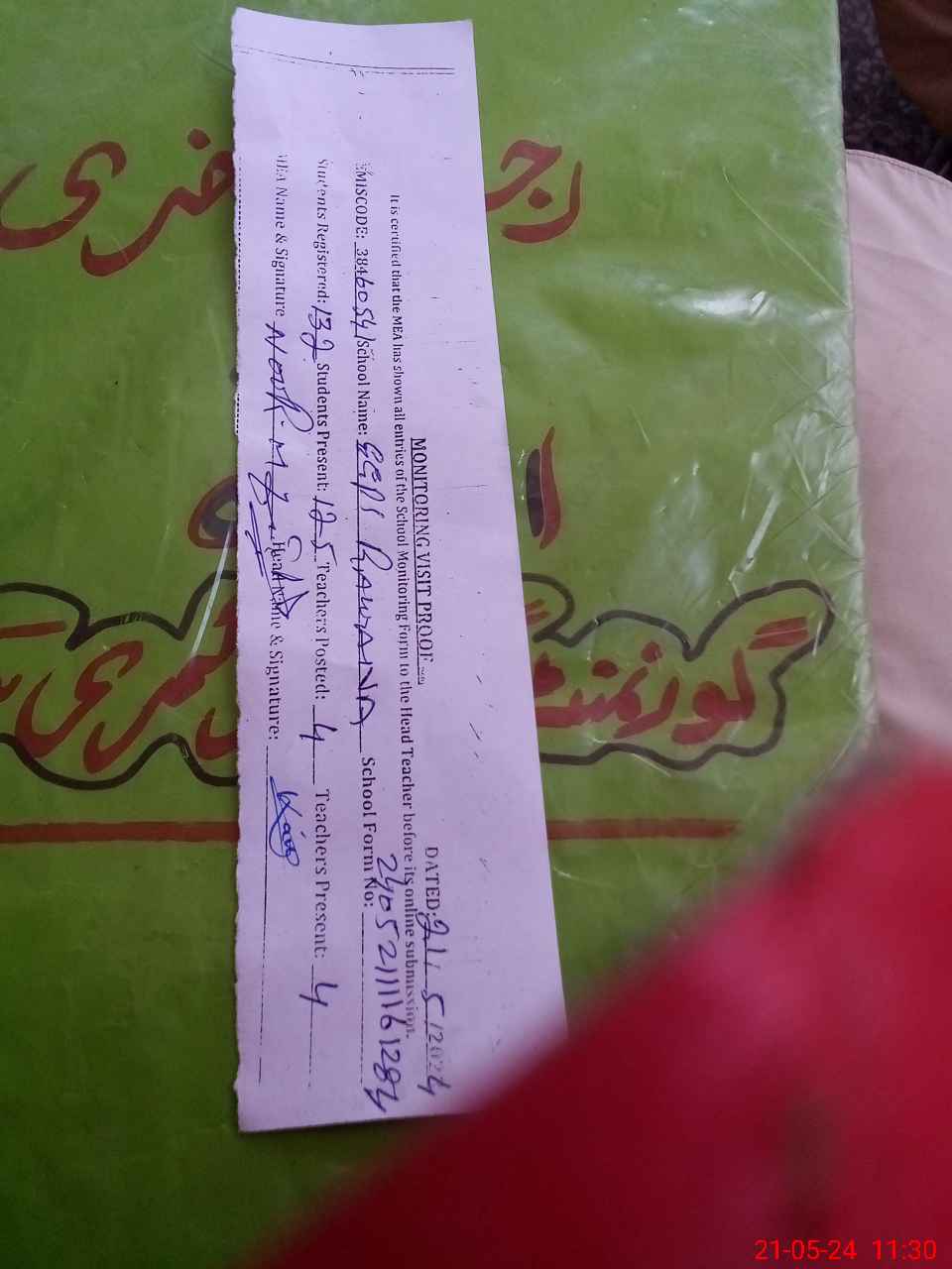 | Attendance Register | Head Teacher | MEA with School | Visit Proof |