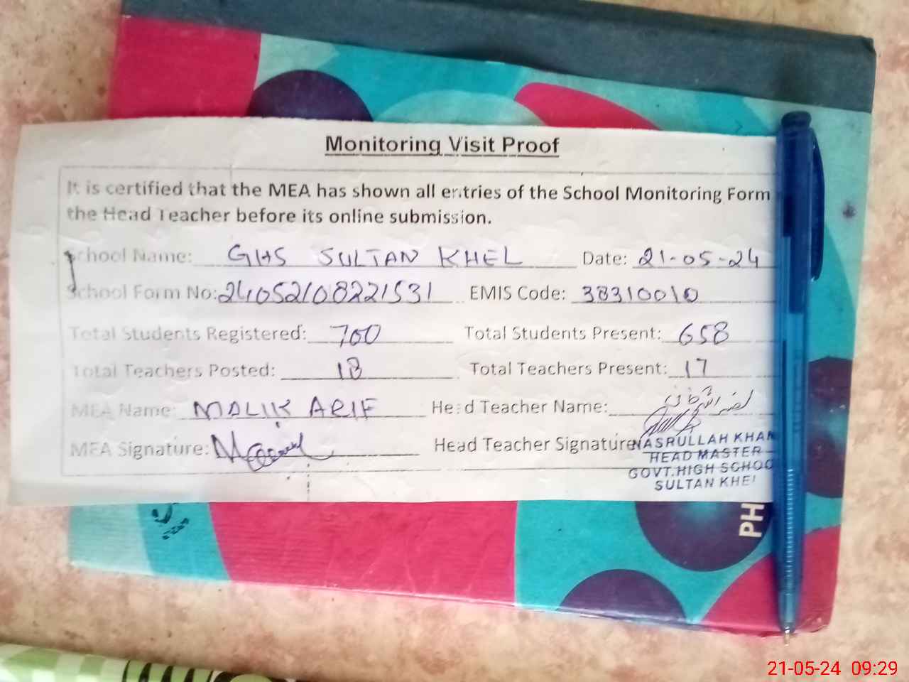 | EMIS Code: 38310010 | Name of School: GHS SULTAN KHEL | |||