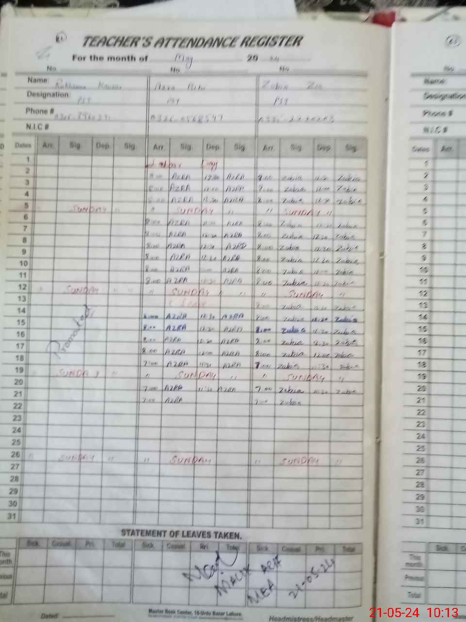 | Name: Zu**** Zi**** Designation: (School Headmaster's/Headmistress's) PST Phone/Cell Number: 03**** |