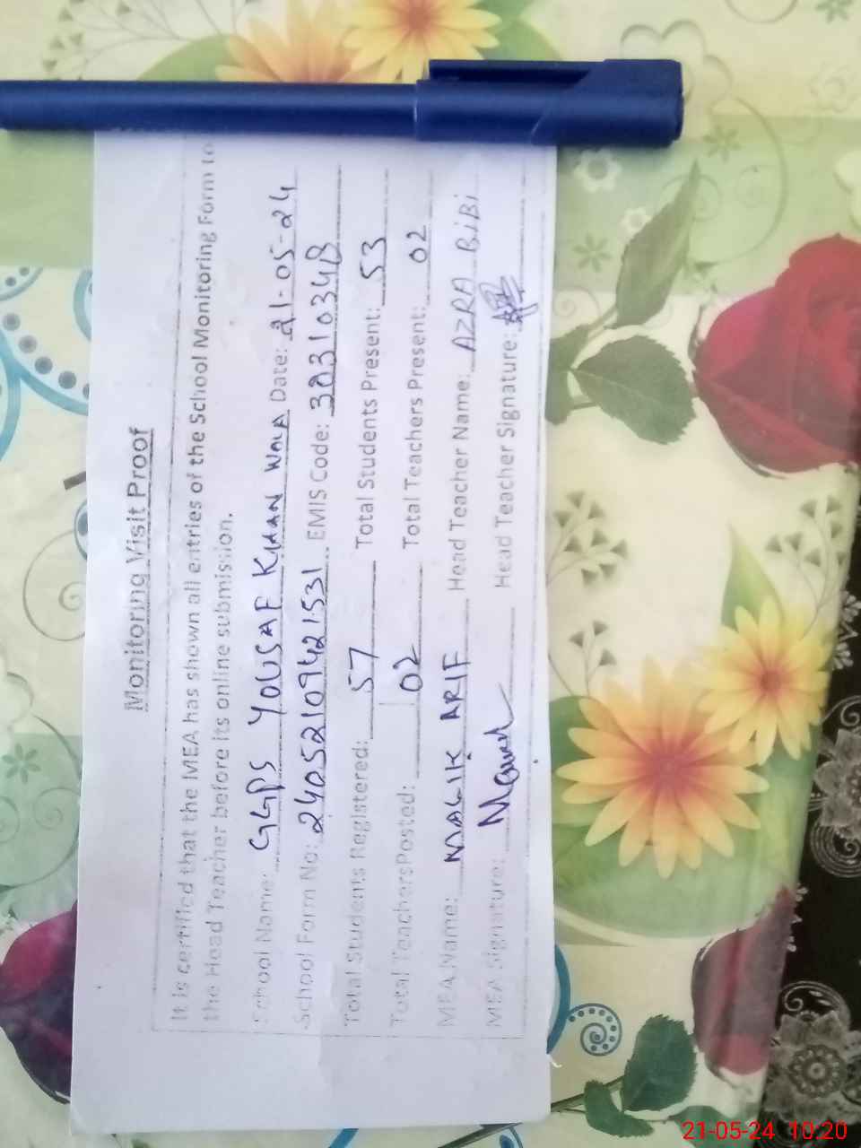 | EMIS Code: 38310348 | Name of School: GGPS YOUSUF KHAN WALA | |||