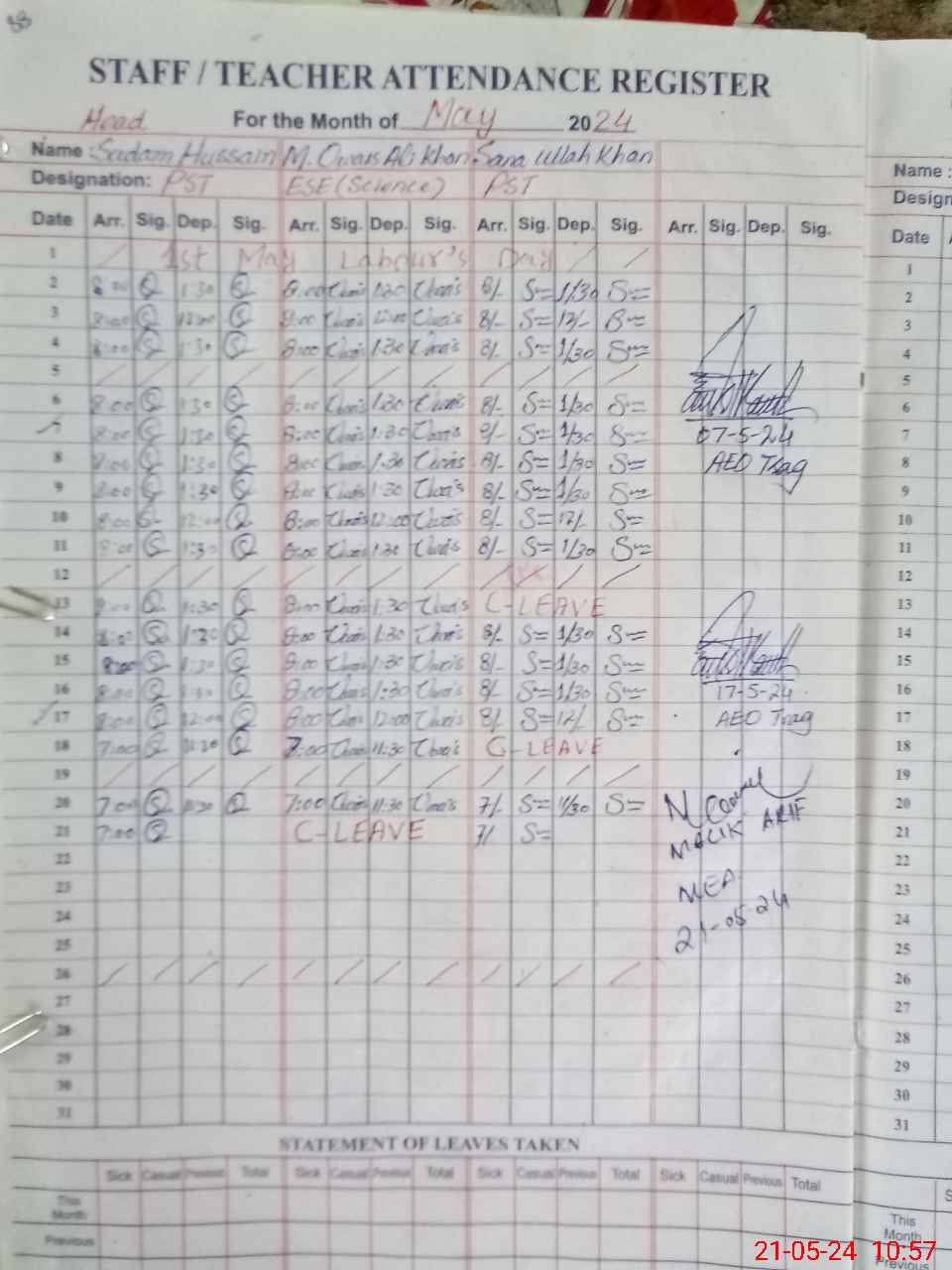 | CNIC | Full Name | Designation | R/C | Absence During Last Calender Month |