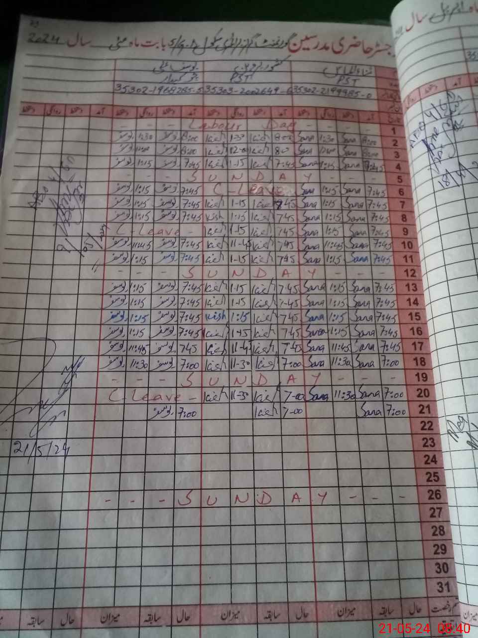 | Name: SA**** AL**** Designation: (School Headmaster's/Headmistress's) PST Phone/Cell Number: 03**** |