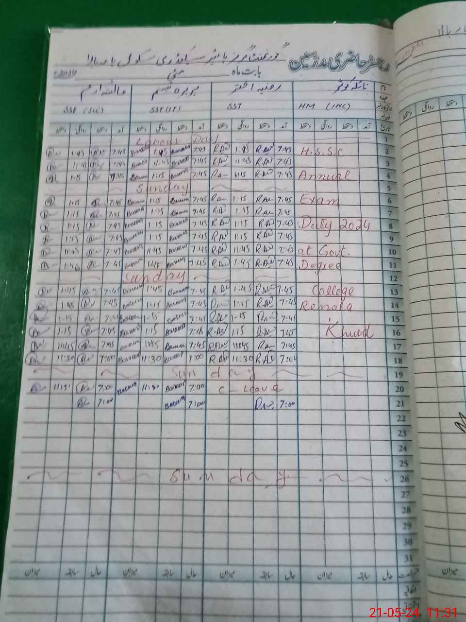 | 35**** | Na**** Ko**** | SST | Regular | 0 | 0 | 0 | 0 | 0 | 0 | 0 | 0 | 0 | Exam Duty |