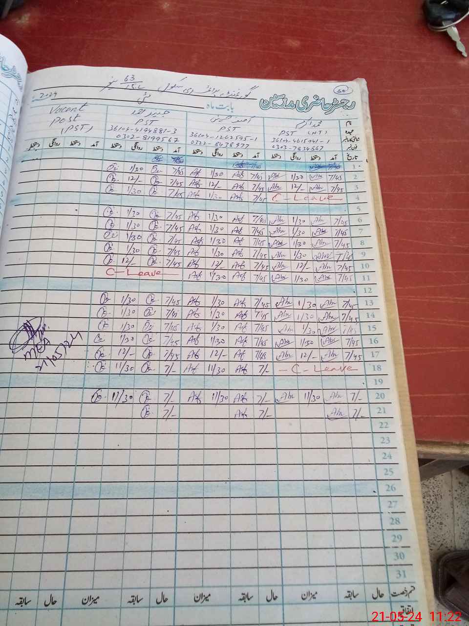 | Name: M.AK**** Designation: (School Headmaster's/Headmistress's) PST Phone/Cell Number: 03**** |