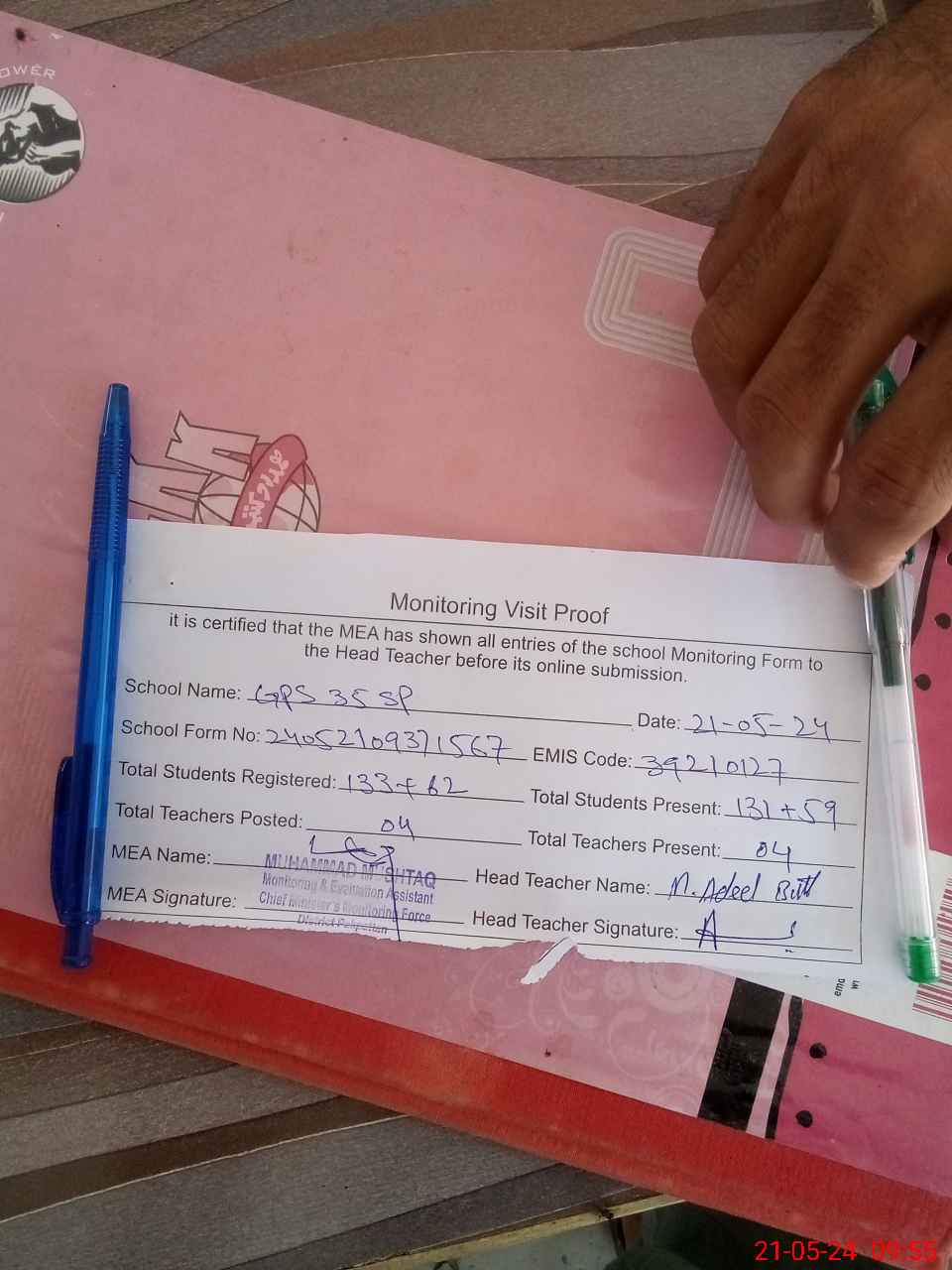| EMIS Code: 39210127 | Name of School: GPS 35 SP | |||
