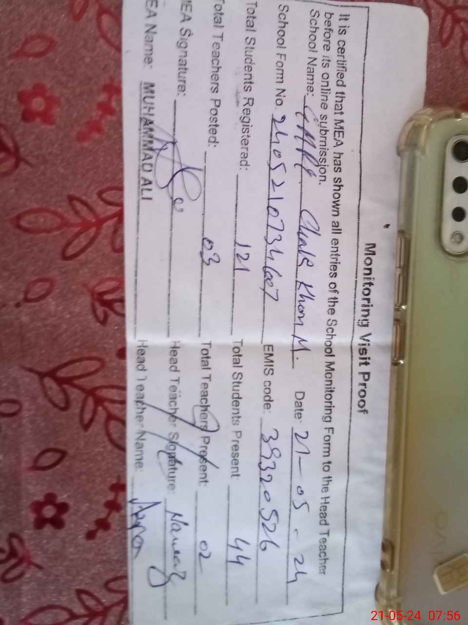 | EMIS Code: 39320526 | Name of School: GMPS CHAK KHAN MUHAMMAD | |||