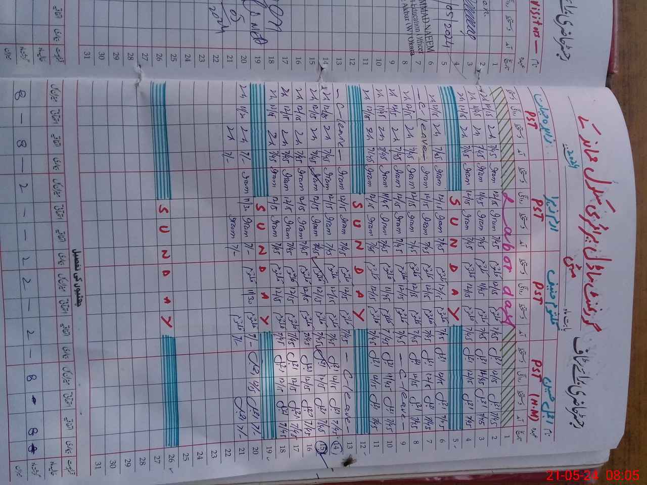 | CNIC | Full Name | Designation | R/C | Absence During Last Calender Month |