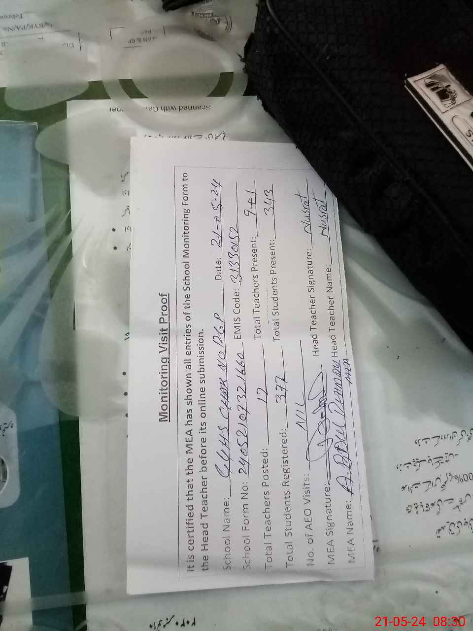 | Attendance Register | Head Teacher | MEA with School | Visit Proof |