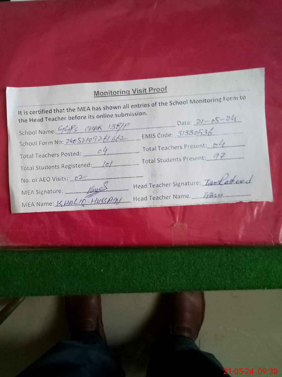 | EMIS Code: 31330536 | Name of School: GGPS 138/P | |||