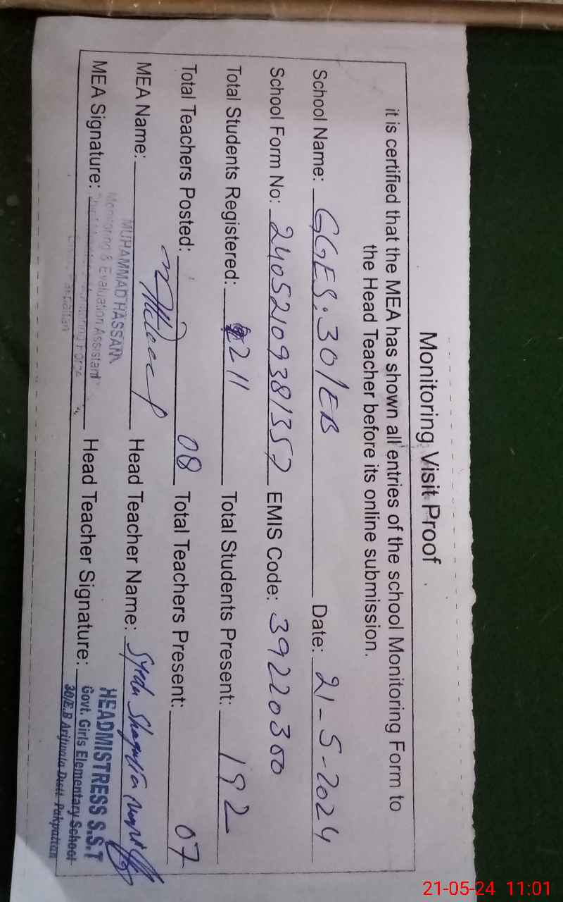 | EMIS Code: 39220300 | Name of School: GGES 30 EB KALAN | |||