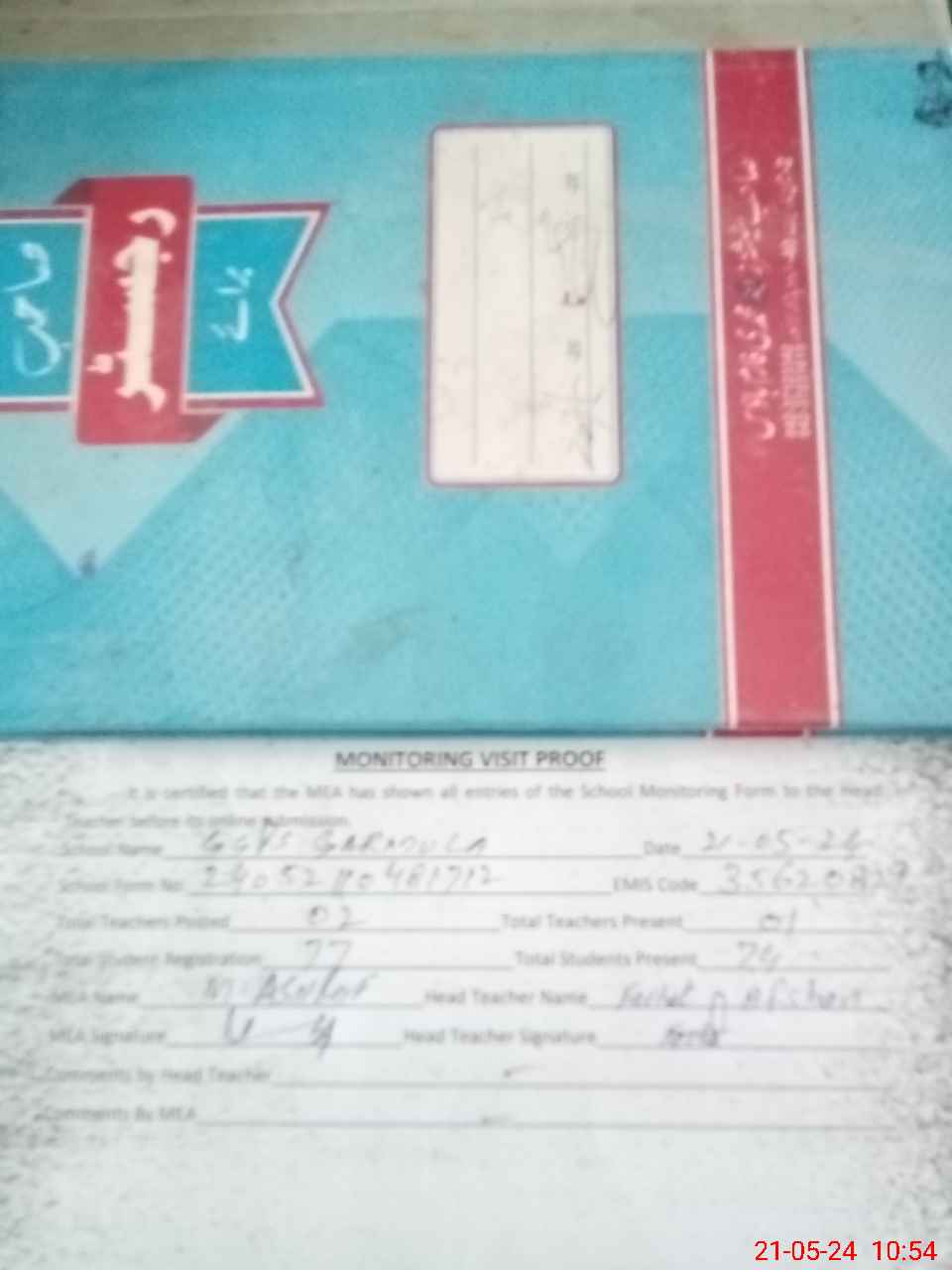 | Attendance Register | Head Teacher | MEA with School | Visit Proof |