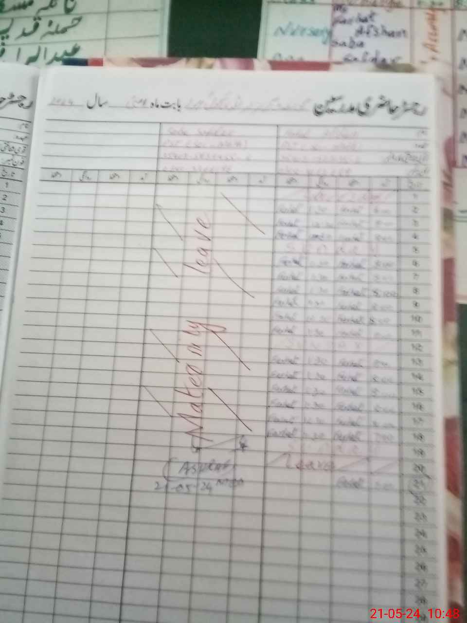 | Leave | Duty | Absent | Maternity | Medical | Ex- Pak |