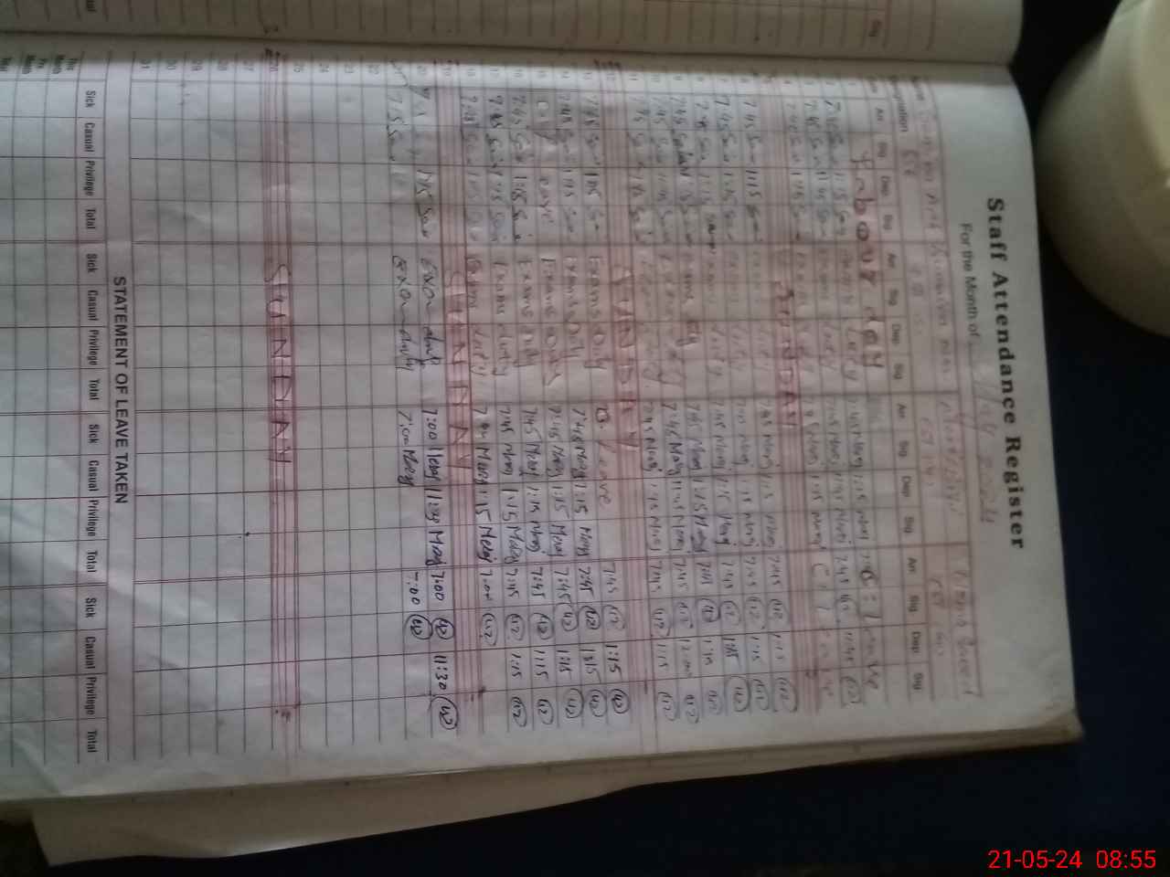 | 35**** | Sa**** Pa**** | 1 | 4 | 0 | 0 | 0 | 0 | 0 | 0 | 0 | 4 | Absent (Un-Authorized) | |