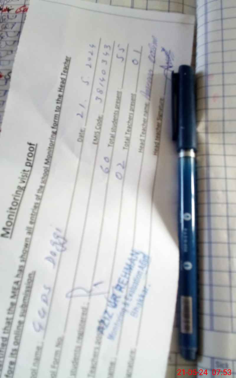 | Certified that this School was Inspected by the Undersigned MEA/DMO Today and the Information Stated Above is as Per Record. | |||||