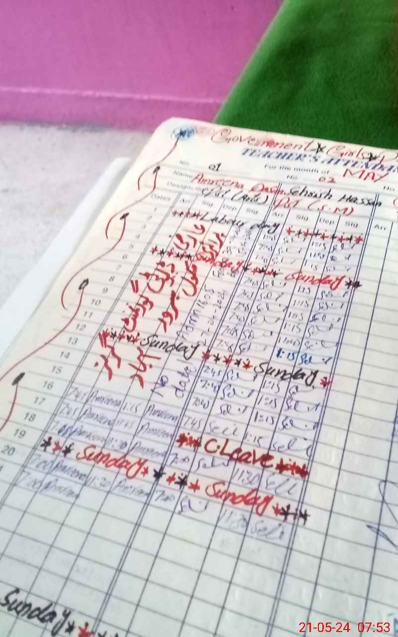 | CNIC | Full Name | Designation | R/C | Absence During Last Calender Month |