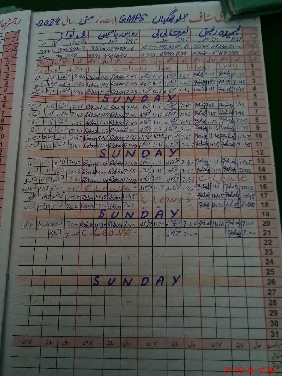 | 35**** | Ro**** Ya**** | PST | Regular | 26 | 0 | 0 | 26 | 0 | 0 | 0 | 0 | 0 | Casual |