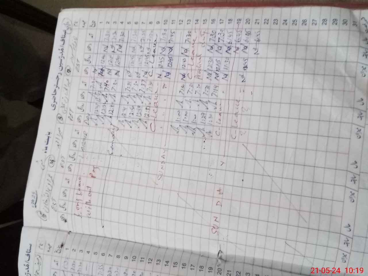 | 35**** | Mu**** Sh**** | 5 | 1 | 0 | 0 | 0 | 0 | 0 | 0 | 0 | 0 | 0 | Exam Duty |