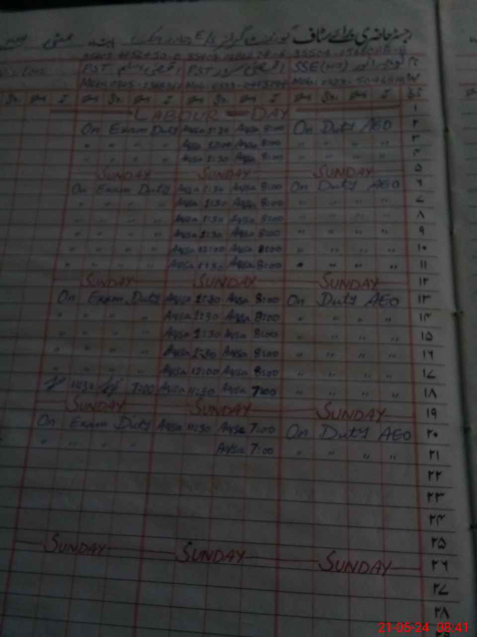 | 35**** | Aq**** As**** | PST | Regular | 0 | 0 | 0 | 0 | 0 | 0 | 0 | 0 | 0 | Exam Duty |