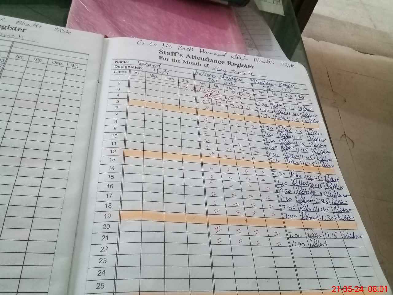 | CNIC | Full Name | Designation | R/C | Absence During Last Calender Month |