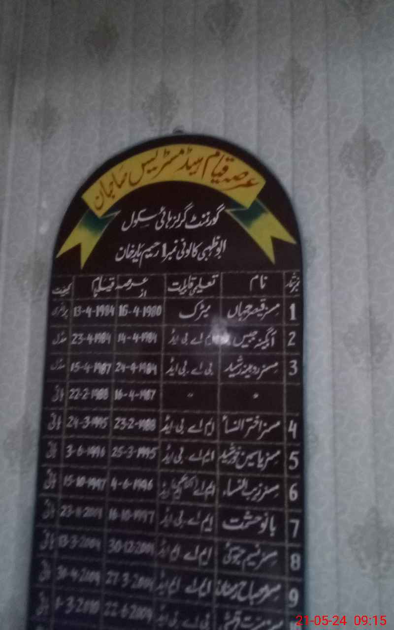| EMIS Code: 31330053 | Name of School: GGHS ABU ZAHBI COLONY NO 1 | |||
