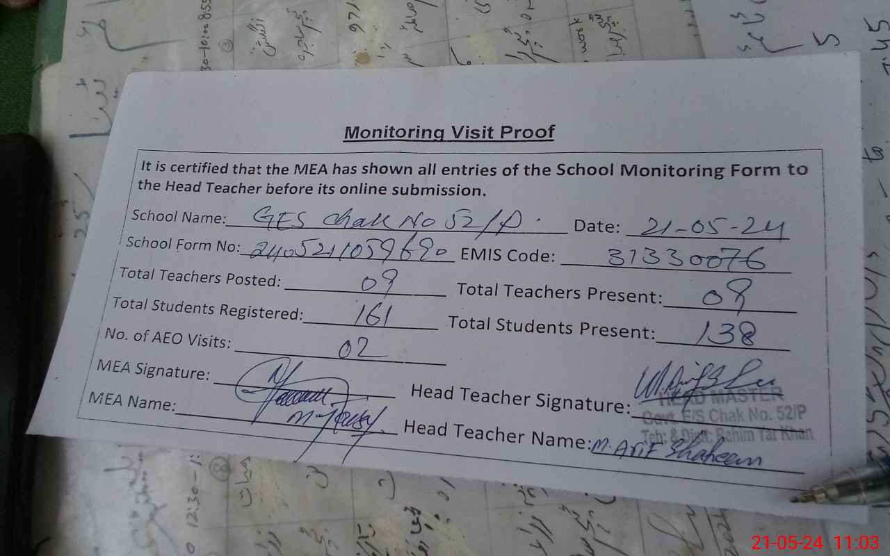 | EMIS Code: 31330076 | Name of School: GES CHAK 52/P | |||