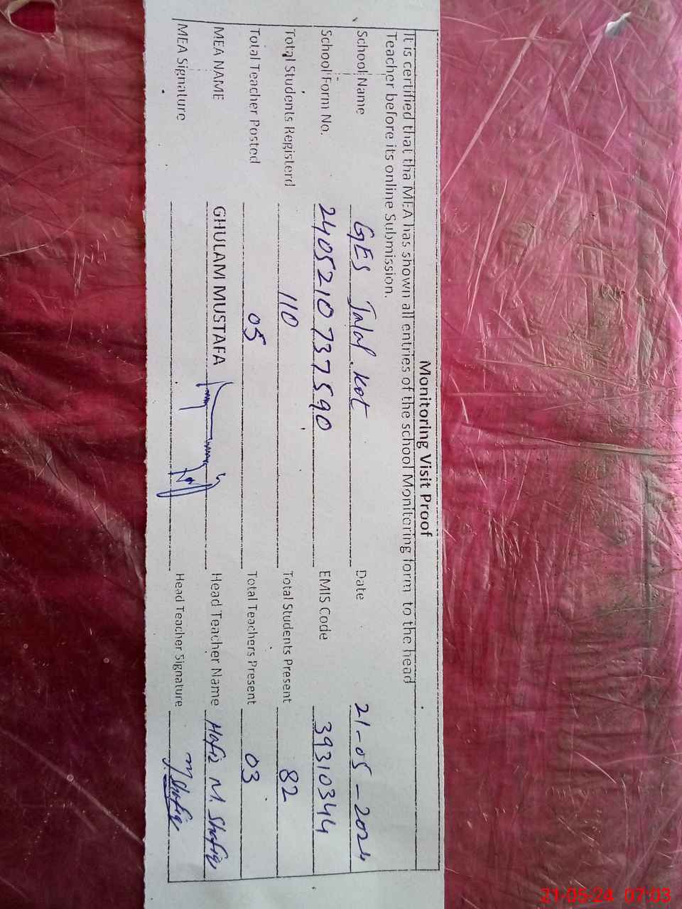 | EMIS Code: 39310344 | Name of School: GES JALAL KOT | |||