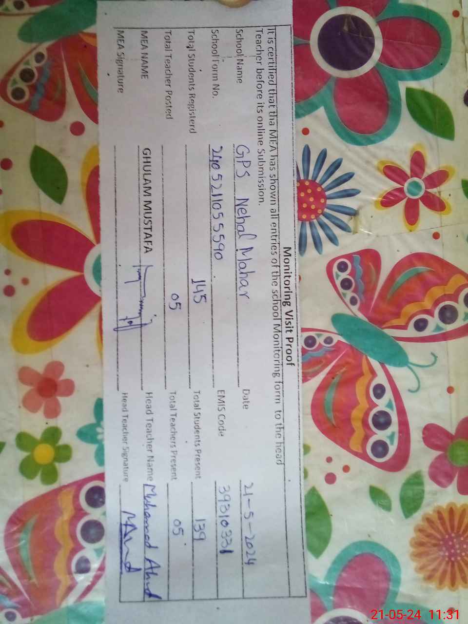 | EMIS Code: 39310331 | Name of School: GPS NEHAL MAHAR | |||