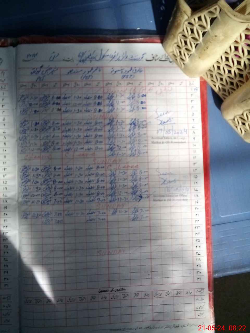 | CNIC | Full Name | Designation | R/C | Absence During Last Calender Month |