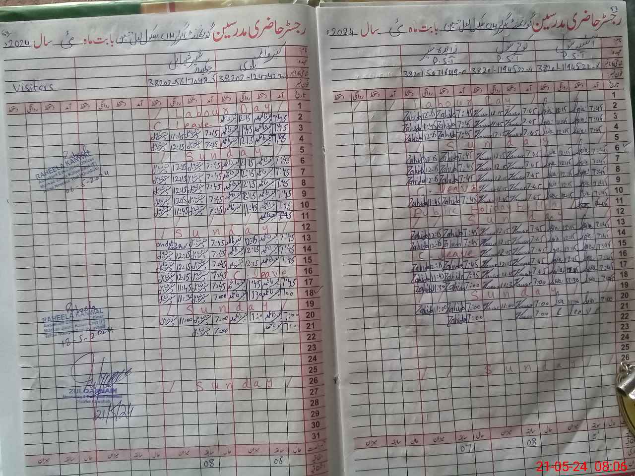 | CNIC | Full Name | Designation | R/C | Absence During Last Calender Month |
